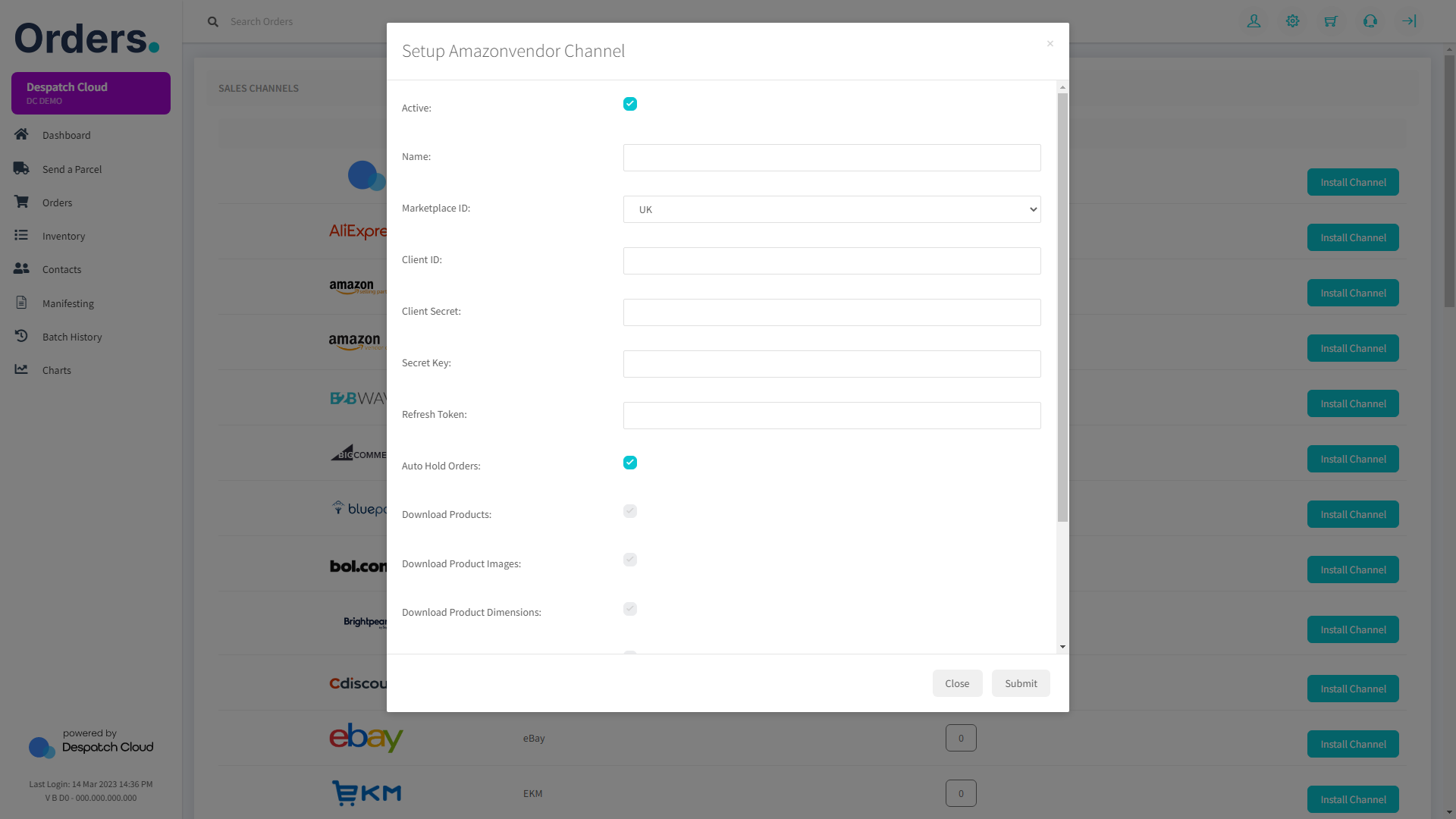 - Client ID & Secret, Secret Key, Refresh Token: Please input the credentials you previously acquired from the Amazon Vendor Central platform.