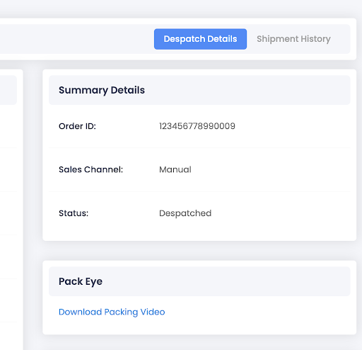 The video is then attached to the order and can be played back any time. You can view the video by going into the Order's Despatch Details and clicking the Download Packing Video Link.