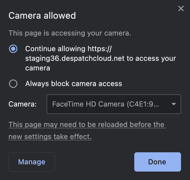 Once this is set, go to Dispatch any order, and you will see this prompt in the top left corner of your browser. In order for PackEye to work, you must allow Permission: