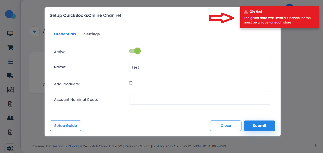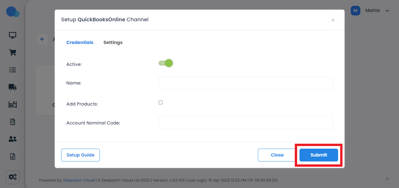 In order to setup a QuickBooks Online accounting channel on Despatch Cloud, follow the steps below: