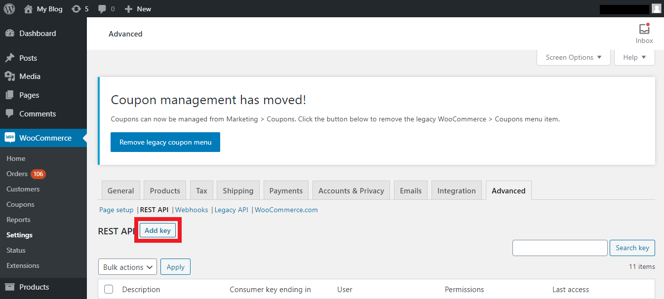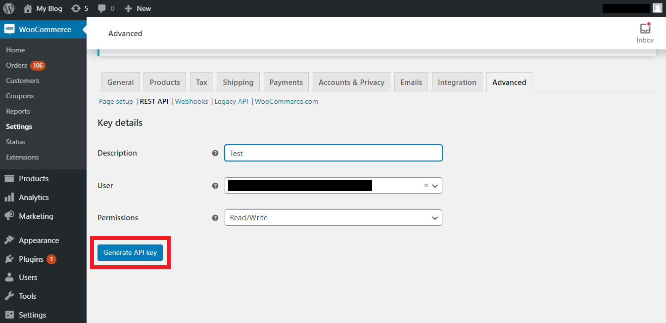 5. Define the API "Key Details" according to the image below. You can enter anything you want in "Description" but you should set the "Permissions" field as "Read/Write".